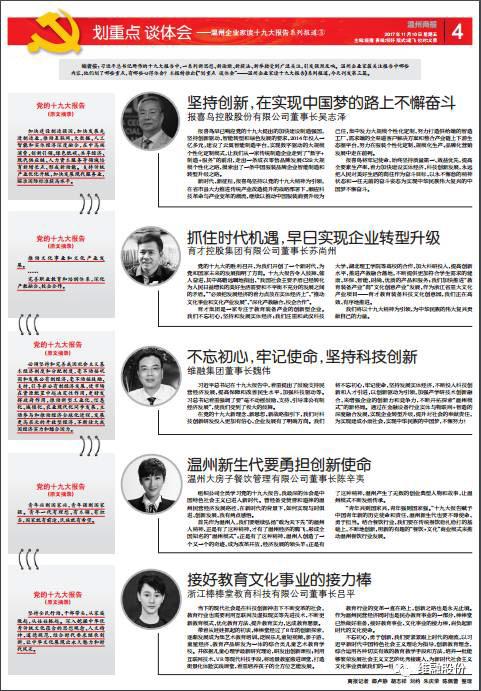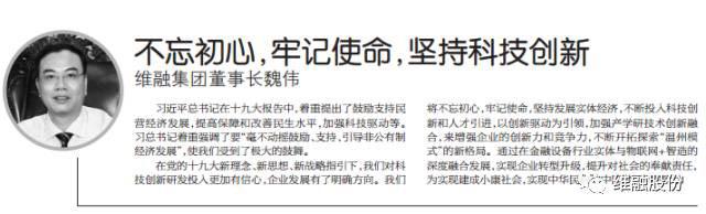據(jù)悉,近日維融集團(tuán)董事長(zhǎng)兼維融股份公司總經(jīng)理魏偉在接受溫州商報(bào)就“企業(yè)家讀十九大報(bào)告”采訪時(shí),提出以“不忘初心,牢記使命,堅(jiān)持科技創(chuàng)新”為核心的十九大報(bào)告體會(huì)。