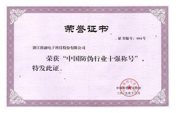 中國(guó)防偽行業(yè)十強(qiáng)稱號(hào)