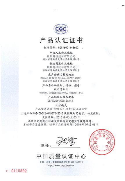 A級點驗鈔機CQC證書(WR8601 8605)