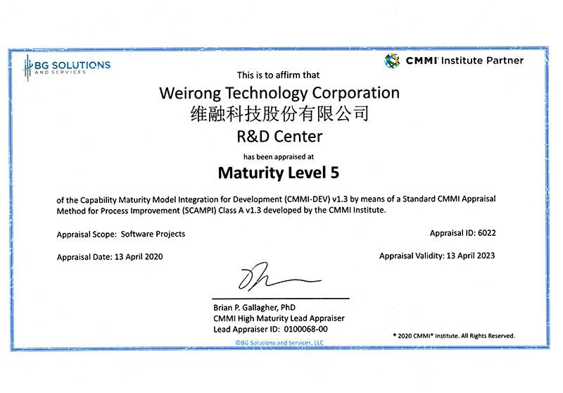 CMMI5認(rèn)證證書