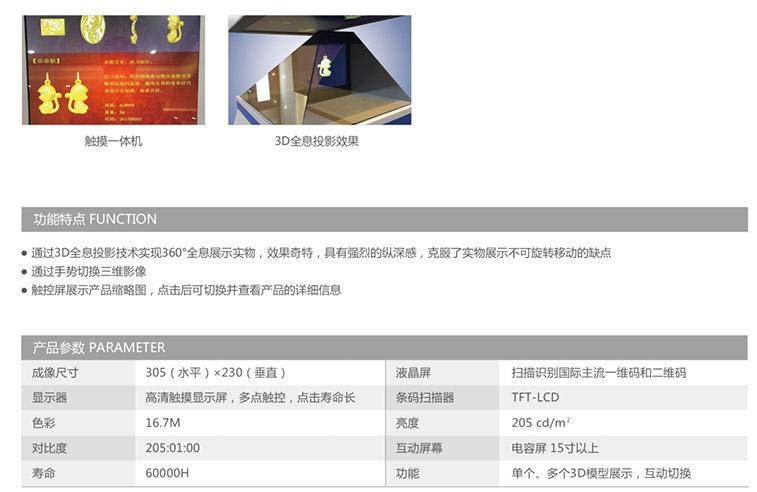 全息投影展示柜是在傳統貴金屬展柜基礎上,運用全息投影技術、互動觸摸技術和計算機技術設計的新一代貴金屬展示設備